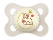 - Il ciuccio Original Night ha una tettarella simmetrica: non c’è un sopra e un sotto, quindi il ciuccio è sempre nella posizione giusta e non interferisce con il normale sviluppo della cavità orale del tuo neonato